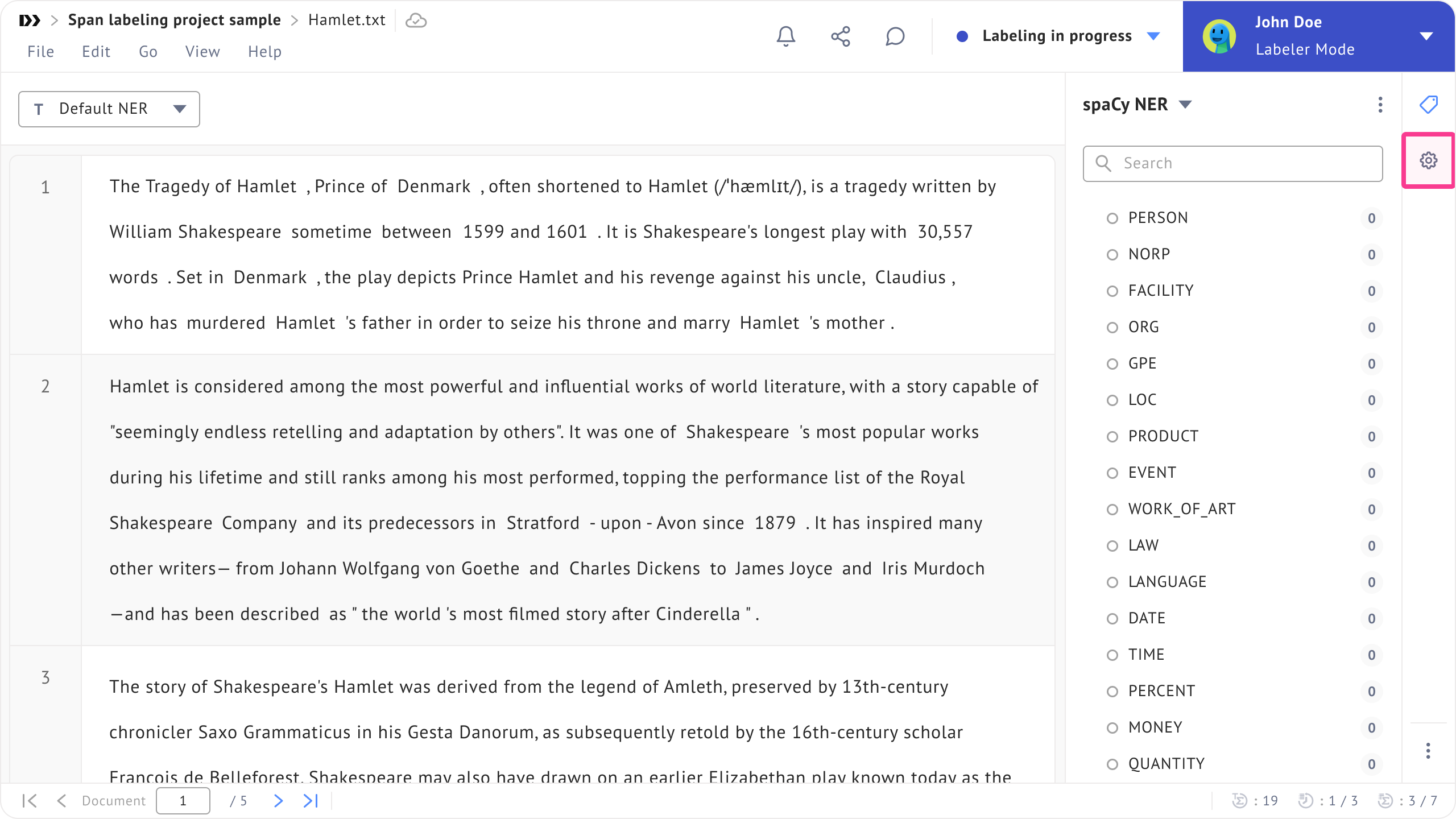 Datasaur provides a number of extensions and shortcuts to make labeling easier still.