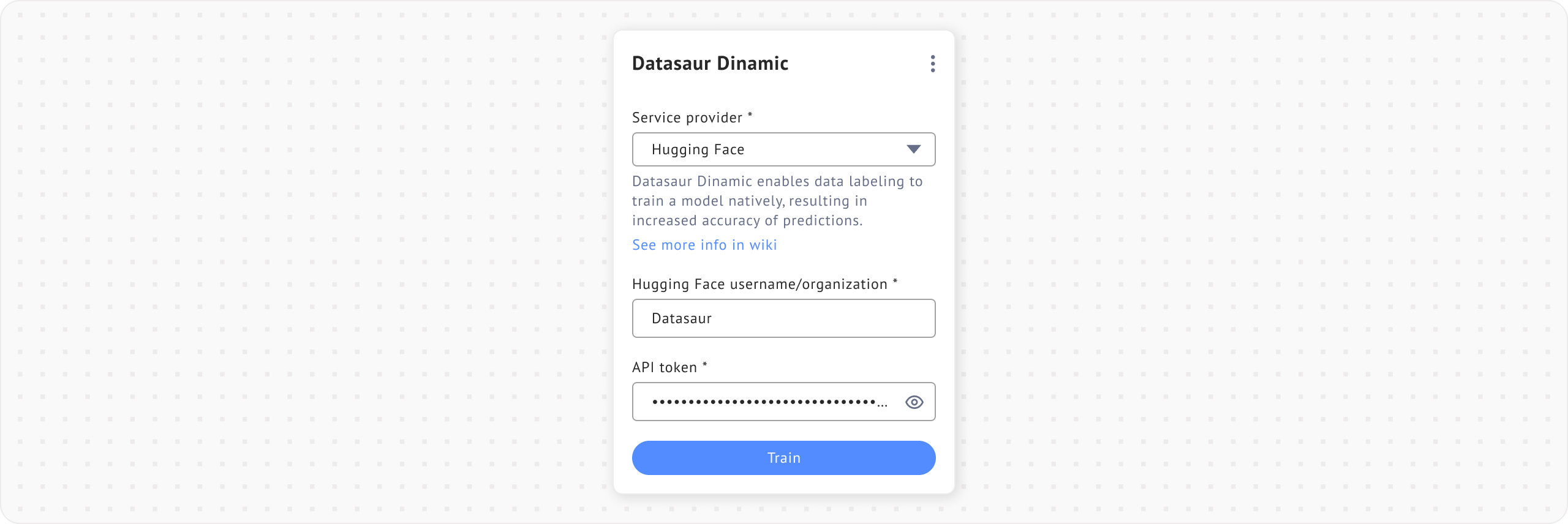 For further details and supported providers, please visit the [Building Your Own Model - Datasaur Dinamic](https://docs.datasaur.ai/build-model/datasaur-dinamic).