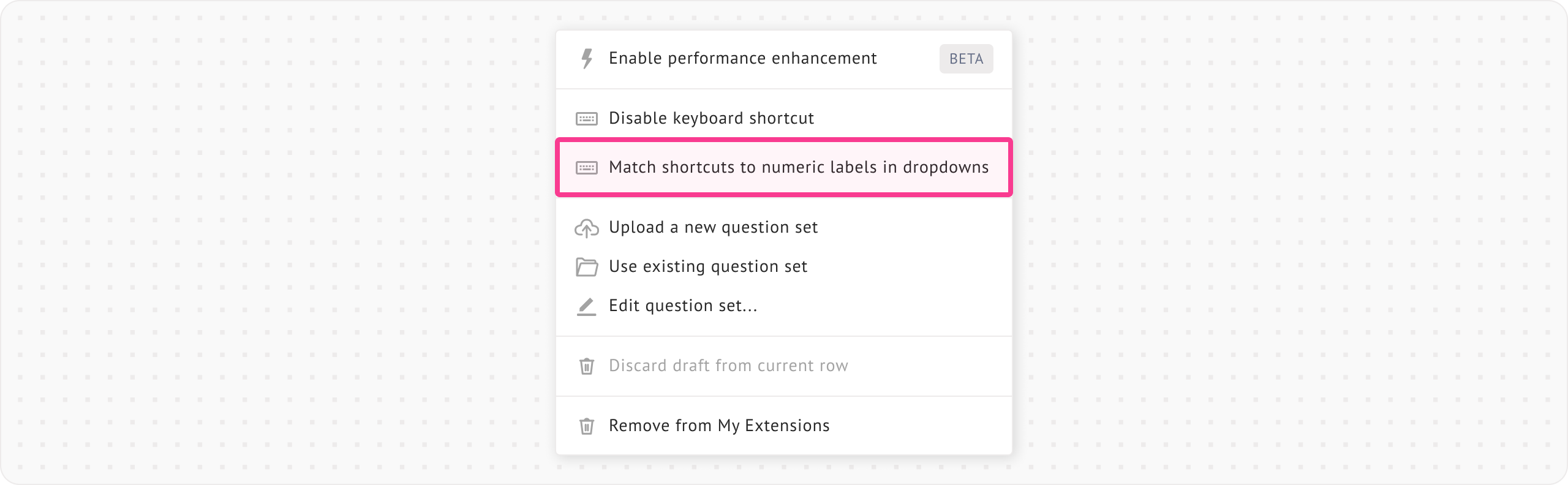 <figure><img src="https://448889121-files.gitbook.io/~/files/v0/b/gitbook-x-prod.appspot.com/o/spaces%2F-MbjY0HseEqu7LtYAt4d%2Fuploads%2Fgit-blob-e494afd53924813b71a4fe2f91eda57b31df4eb7%2FExtension%20%20-%20row%20doc%20labeling%20-%20more%20menu%20-%20Match%20shortcuts%20to%20numeric%20labels%20in%20dropdowns.png?alt=media" alt=""><figcaption></figcaption></figure>