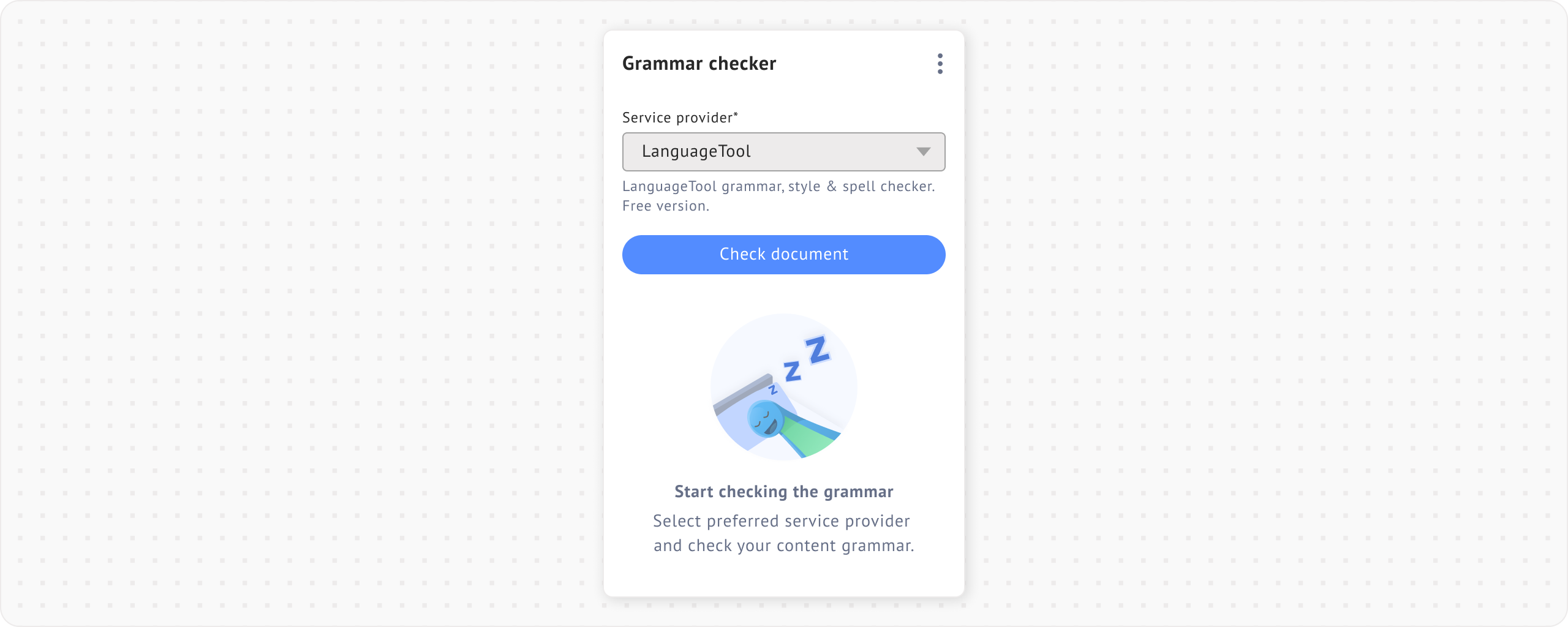 <figure><img src="https://448889121-files.gitbook.io/~/files/v0/b/gitbook-x-prod.appspot.com/o/spaces%2F-MbjY0HseEqu7LtYAt4d%2Fuploads%2Fgit-blob-a3c4d42755de20ee7d32ef854a3e53e9512cbe1d%2FExtension%20-%20Grammar%20checker%20-%20highlight%20-%20empty.png?alt=media" alt=""><figcaption></figcaption></figure>
