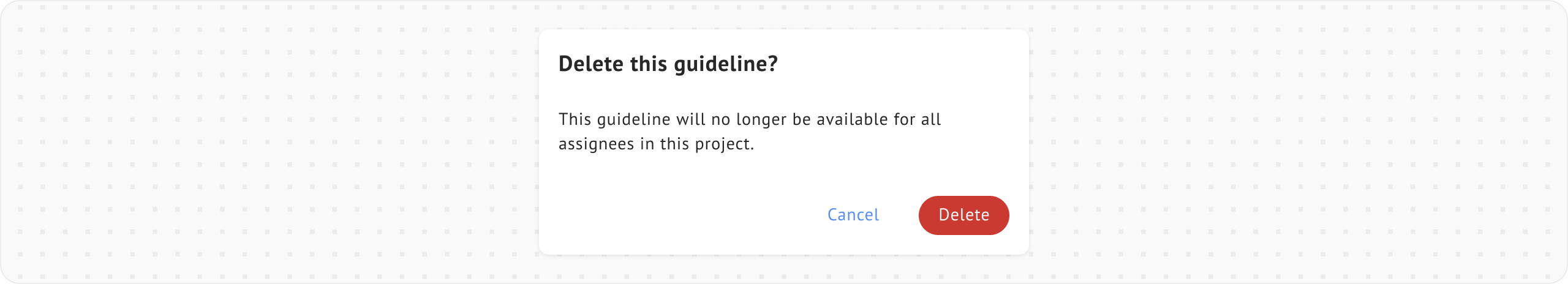 While deleting a guideline will remove it for all assignees in the project.