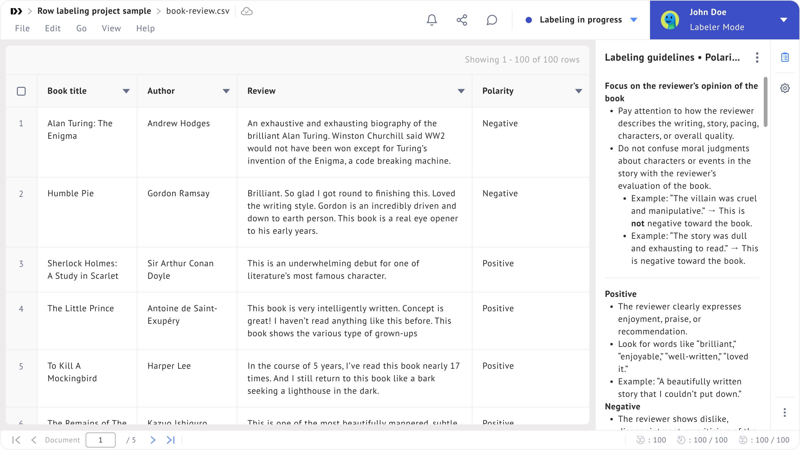 The **Labeling guidelines** extension contains the instructions that labelers should follow during labeling tasks.