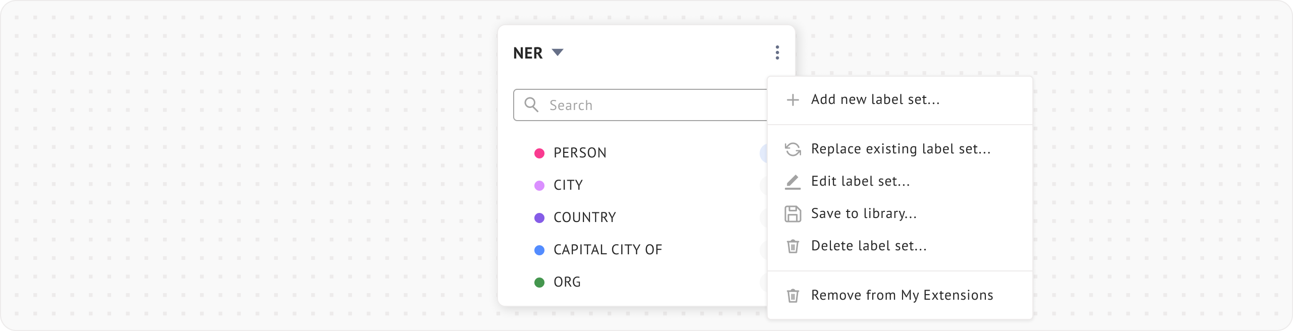 Within a project, label sets can be modified through the menu by right-clicking the three-dot menu in the extension.