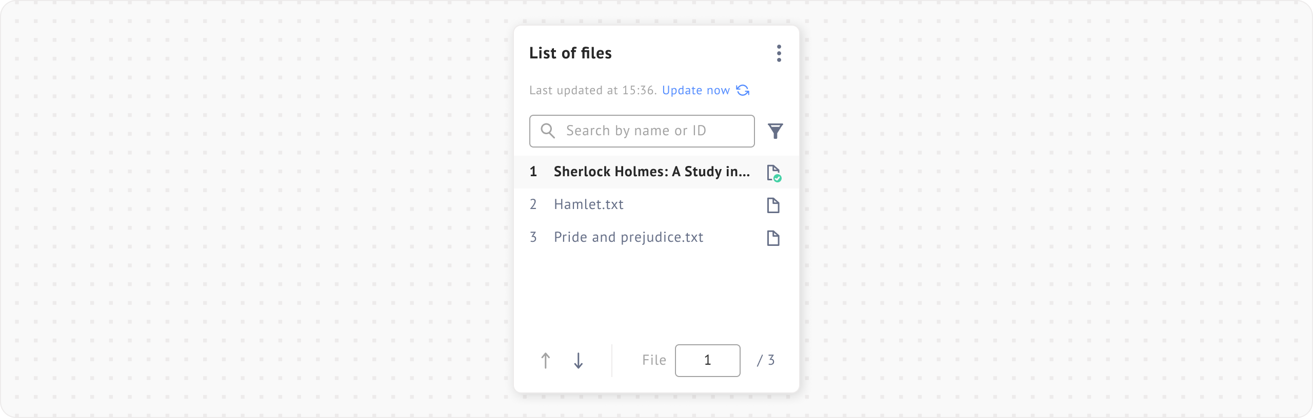 **List of files** extension displays a list of files uploaded to the project, providing an organized overview of all files arranged alphabetically.