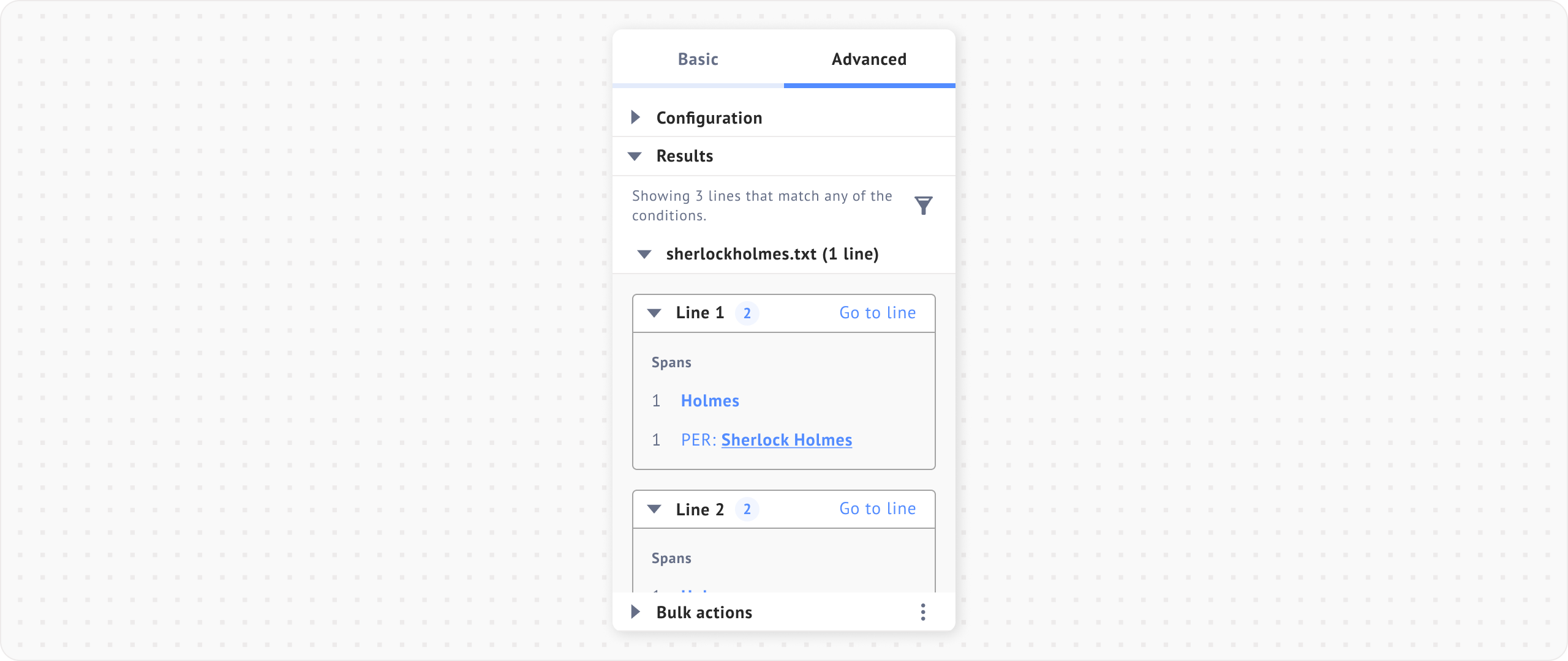 3. **Metadata condition** — Searches for key-value pairs in the metadata attached to each line.
