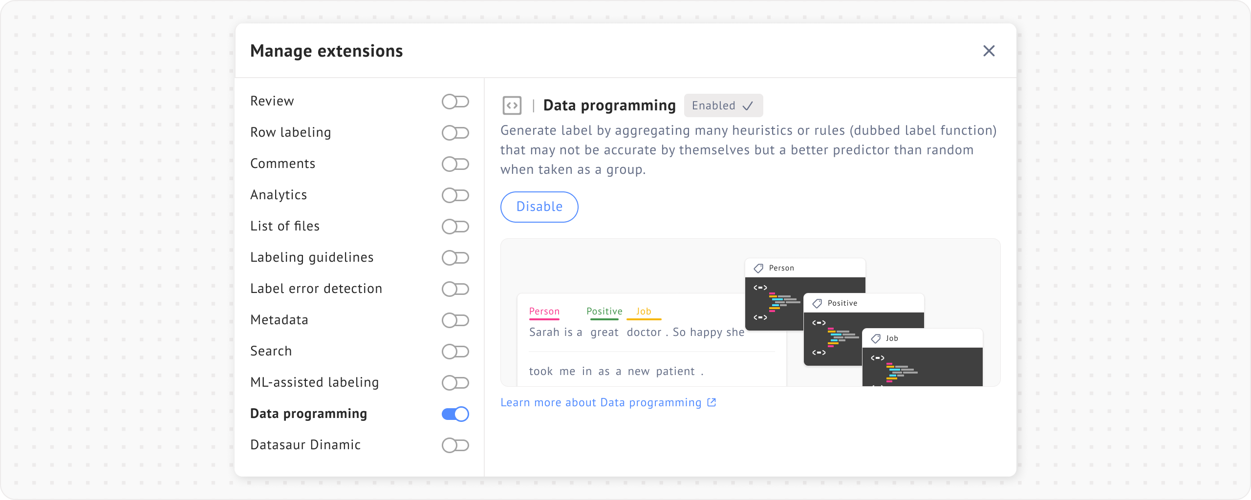 Data programming extension