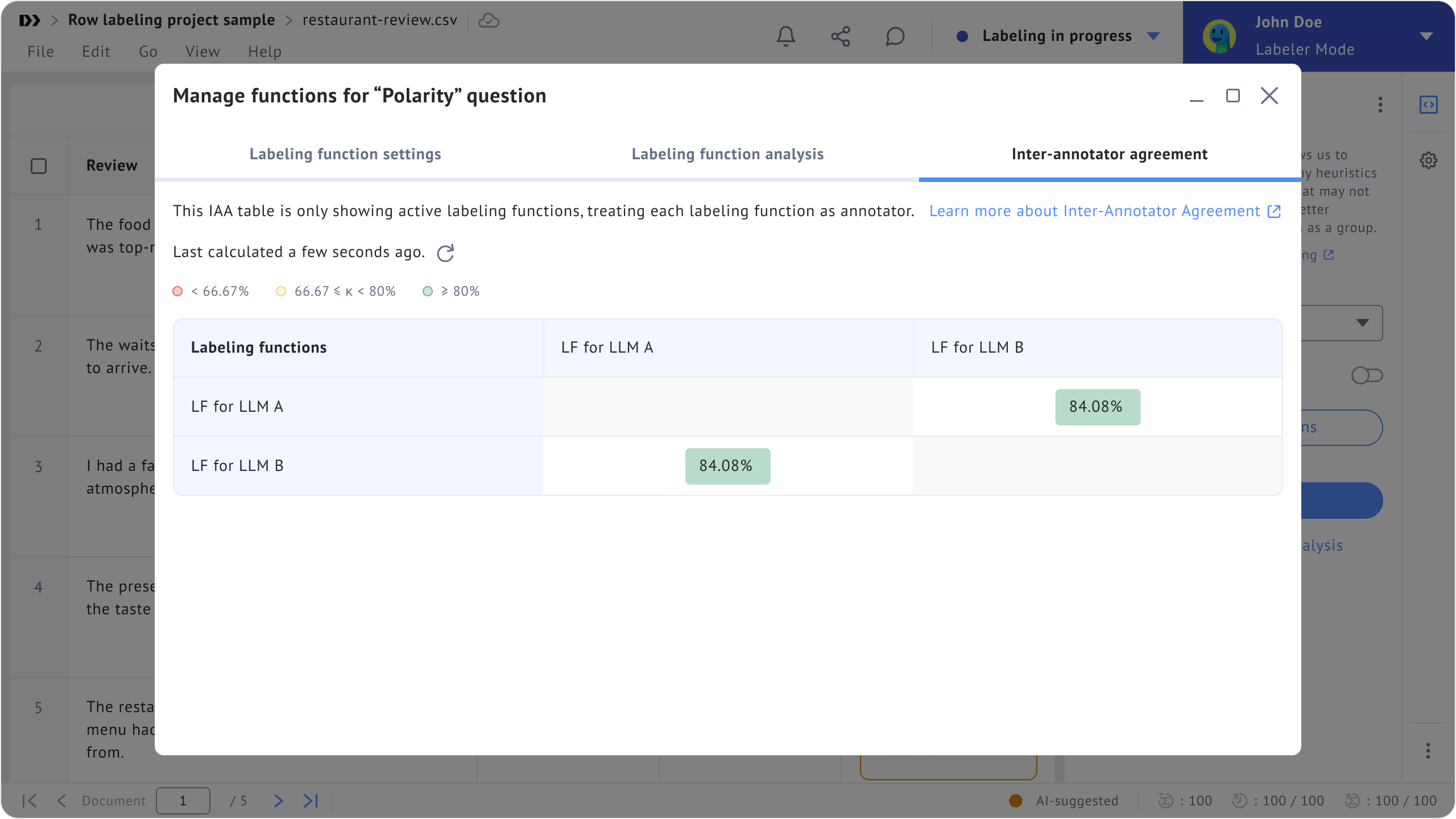Inter-annotator agreement tab