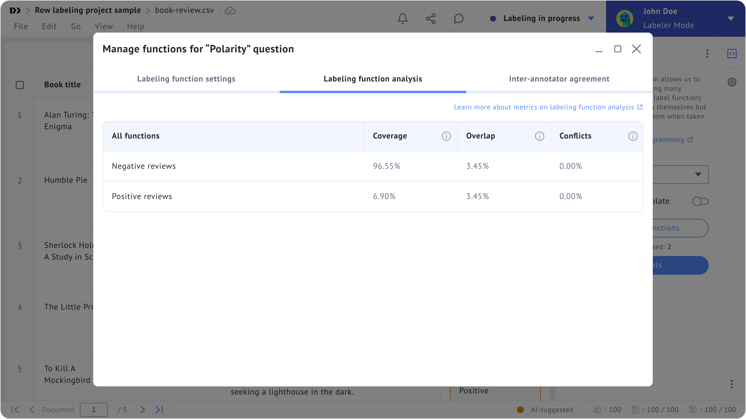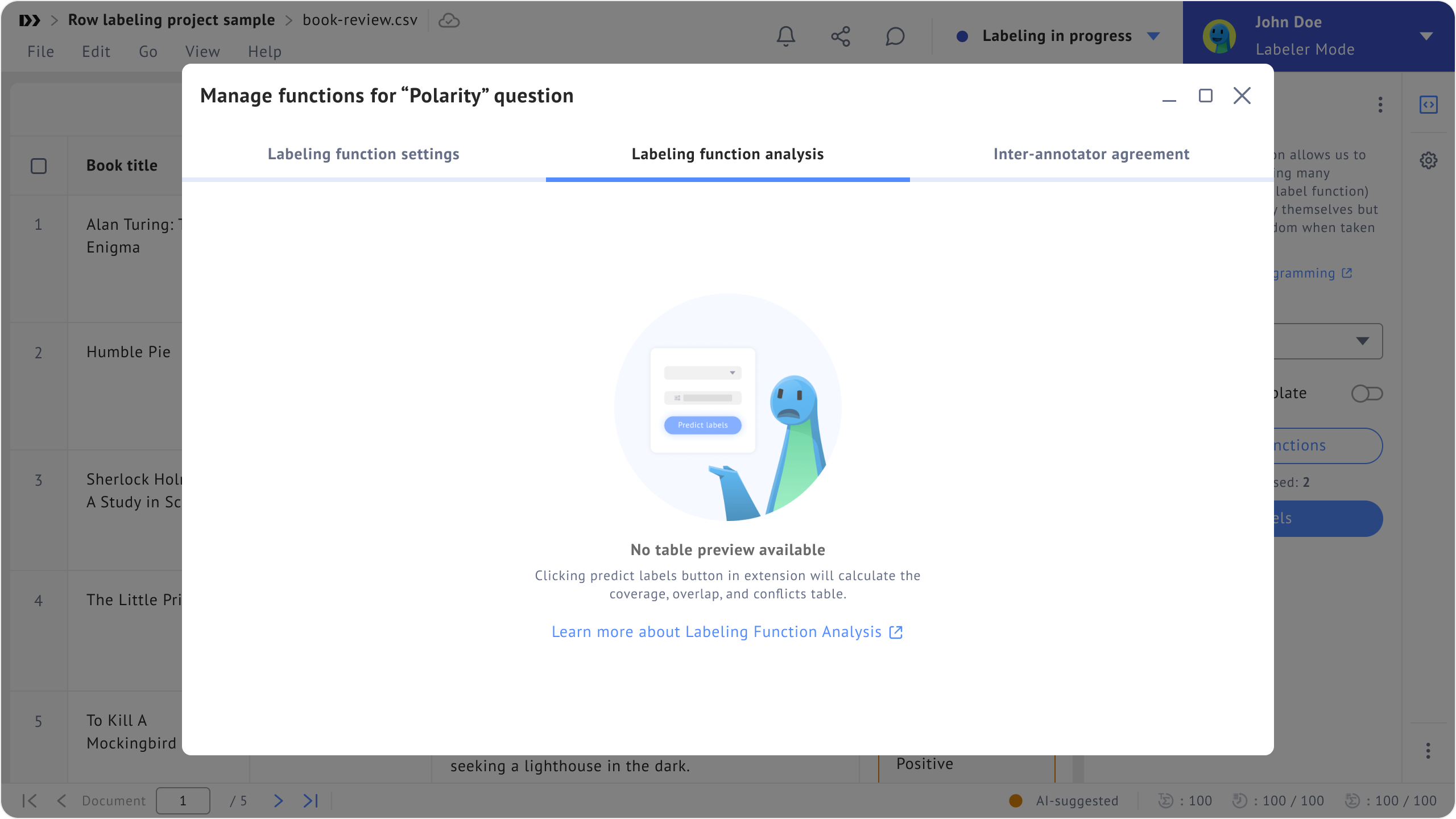 ### Labeling Function Analysis Window