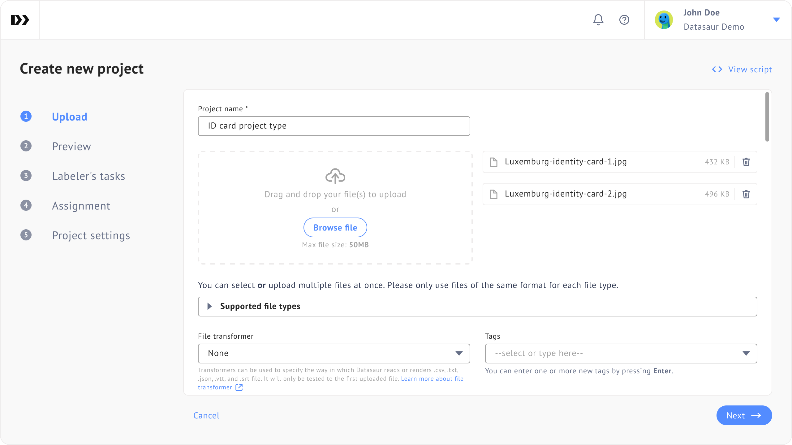 For the rest of the Project Creation Process, you will then be able to take all the steps one takes in other project types: Preview, Labeler's Tasks, Assignment, and Project Settings.