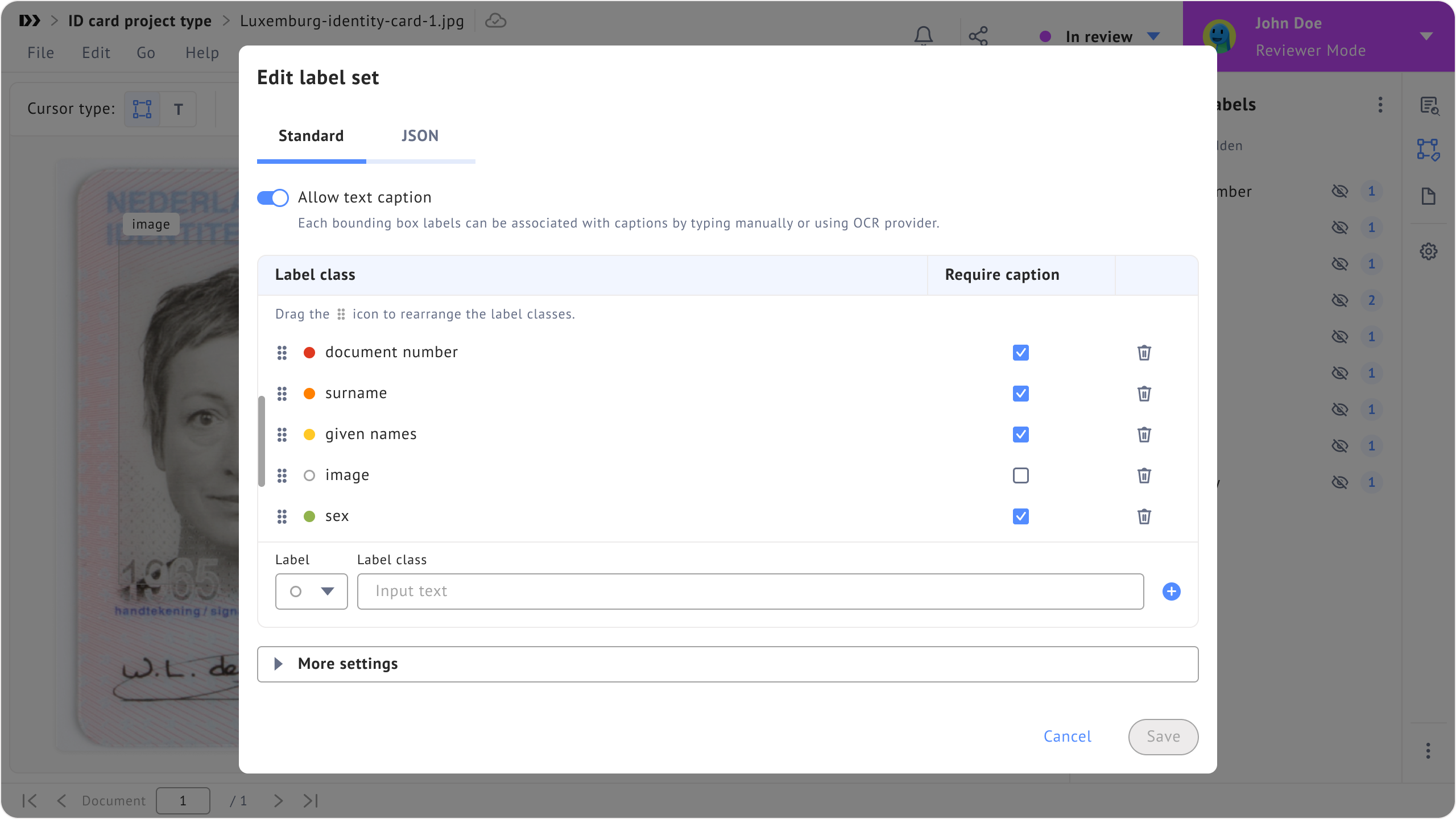 <figure><img src="https://448889121-files.gitbook.io/~/files/v0/b/gitbook-x-prod.appspot.com/o/spaces%2F-MbjY0HseEqu7LtYAt4d%2Fuploads%2Fgit-blob-5b0bbf2a8be3dbd5c73d7f86e75622bc9249ff8d%2FProject%20-%20bounding%20box%20labeling%20-%20edit%20label%20set%20dialog%20-%20Standard%20tab%20(1).png?alt=media" alt=""><figcaption></figcaption></figure>