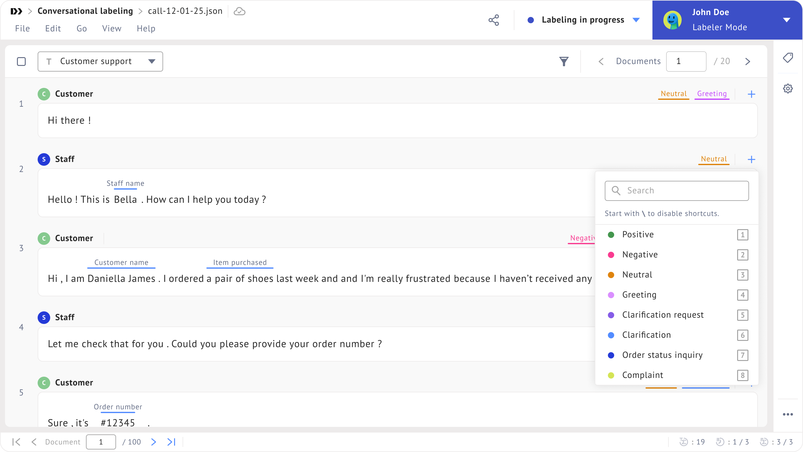 <figure><img src="https://448889121-files.gitbook.io/~/files/v0/b/gitbook-x-prod.appspot.com/o/spaces%2F-MbjY0HseEqu7LtYAt4d%2Fuploads%2Fgit-blob-728cc4be314e8249270811e141a3a08ac83a7e99%2FProject%20-%20conversational%20labeling%20-%20labeler%20mode%20-%20change%20label%20-%20dropdown.png?alt=media" alt=""><figcaption></figcaption></figure>