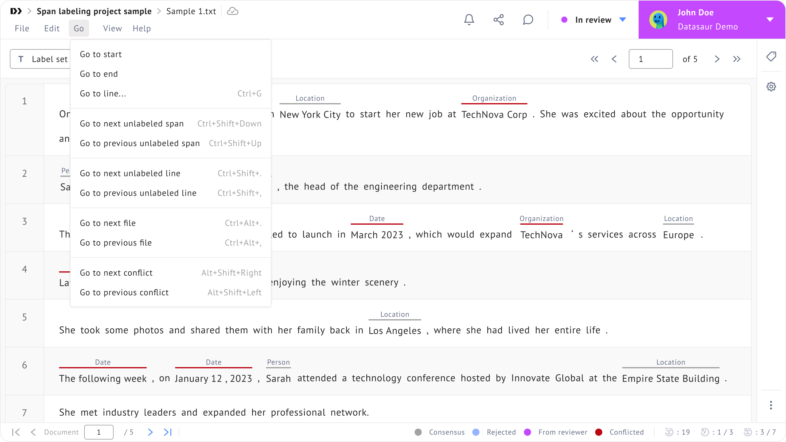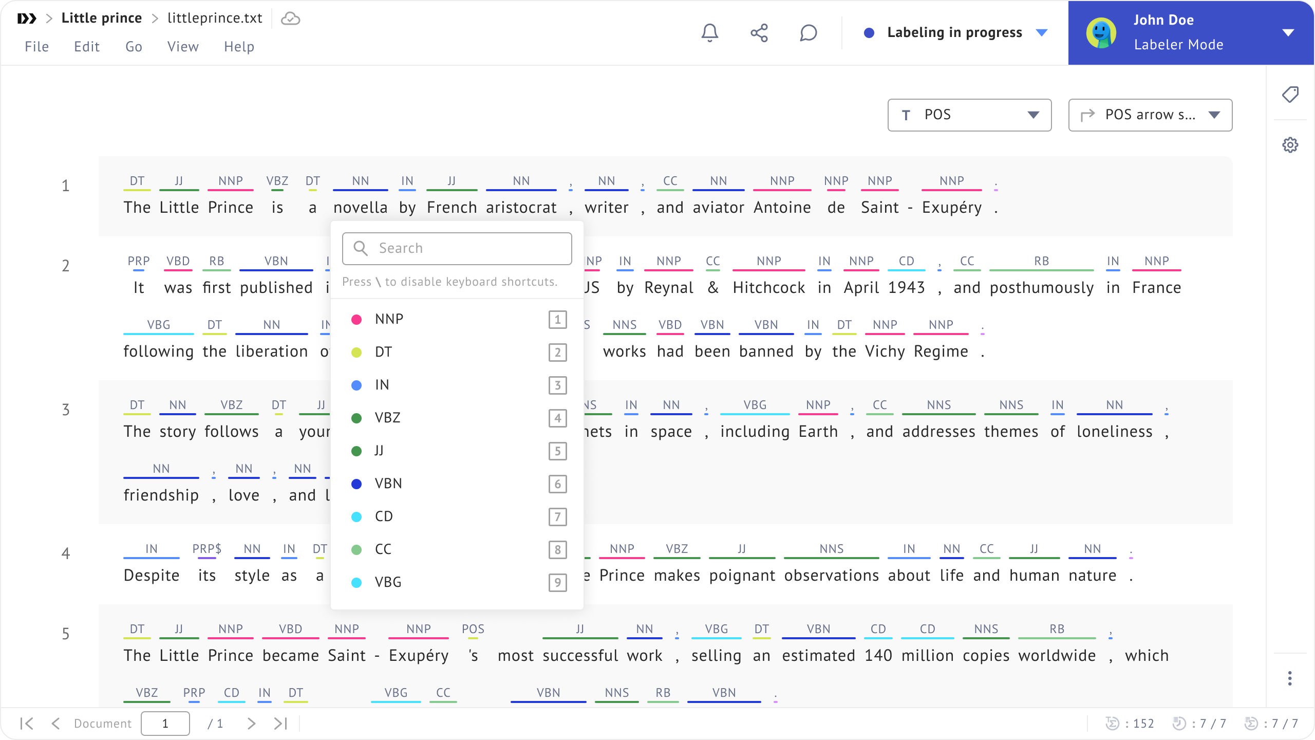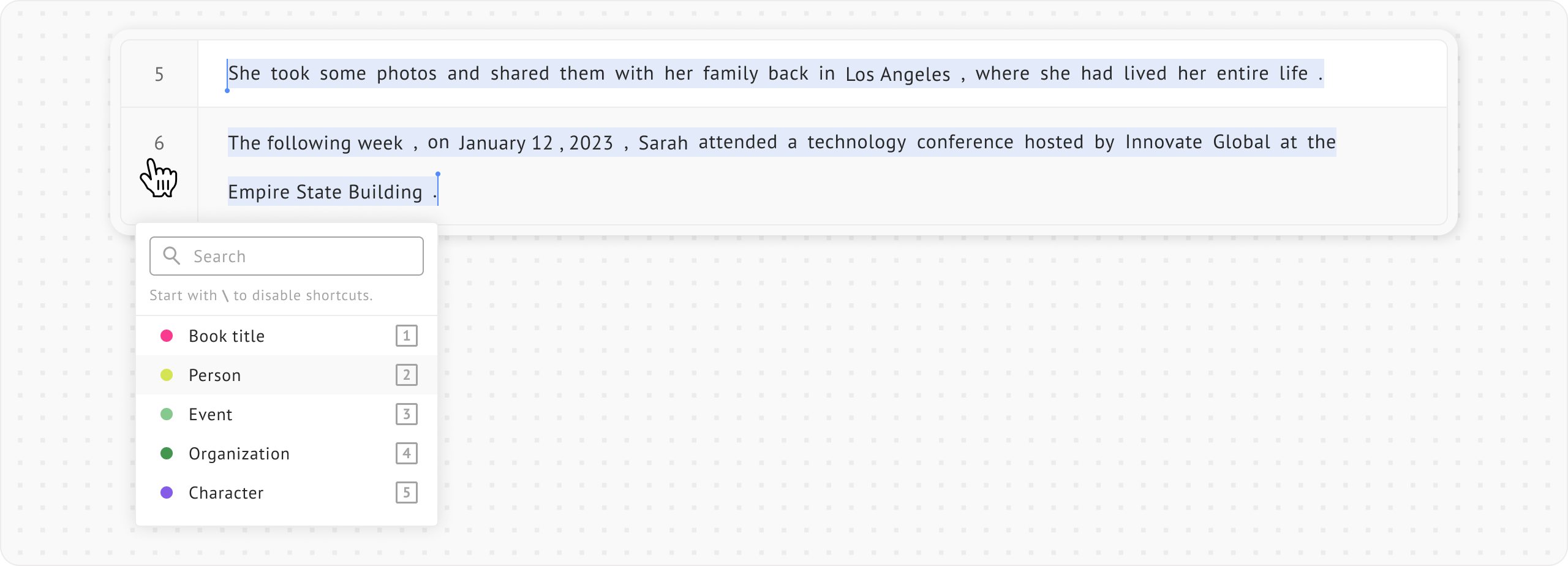 In the following documentation we will guide you on how to use hotkeys to apply labels and how to apply multiple labels to the same token span.