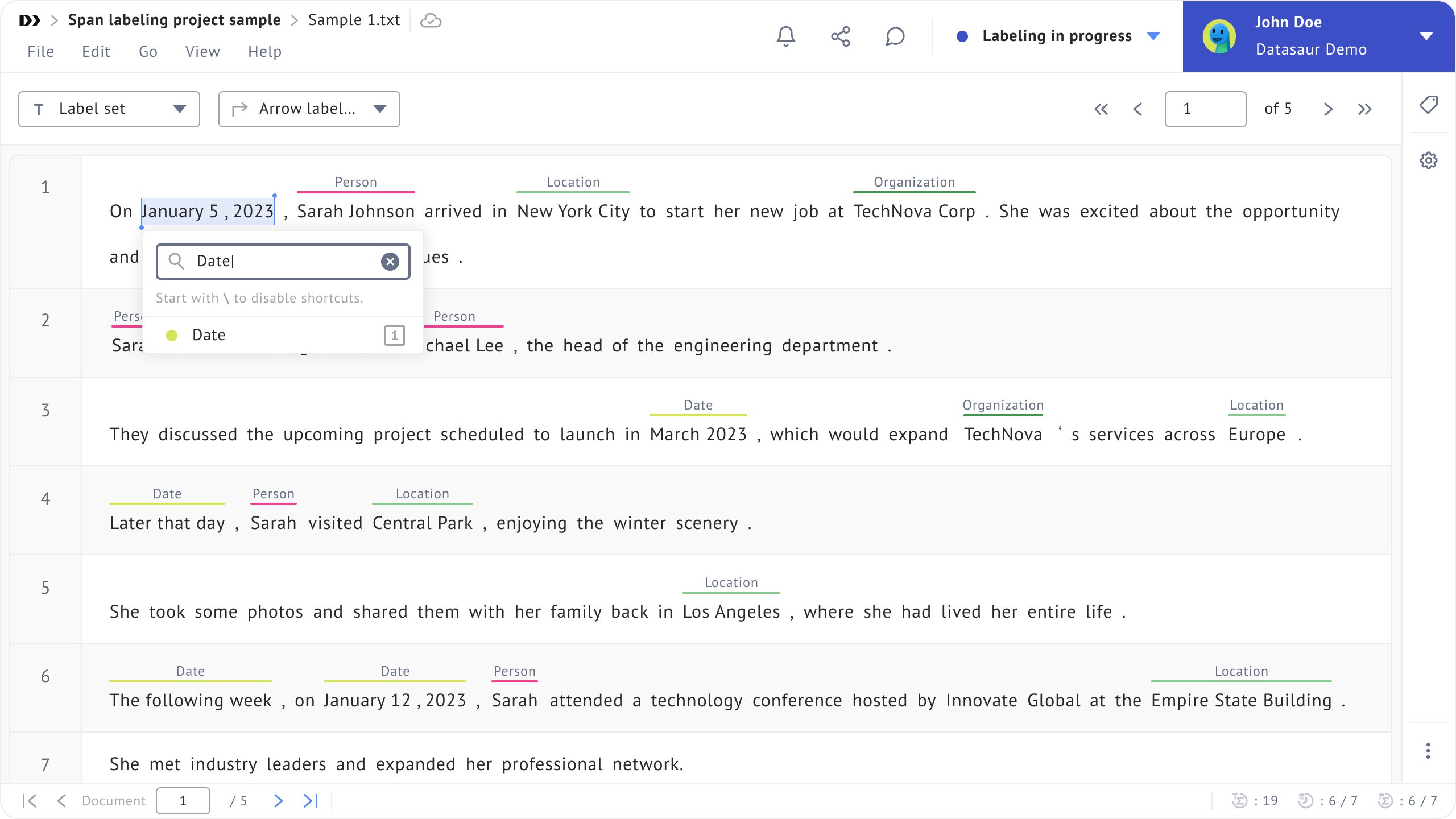 Once the setting is enabled, follow these simple steps to apply multiple labels to a token or a span: