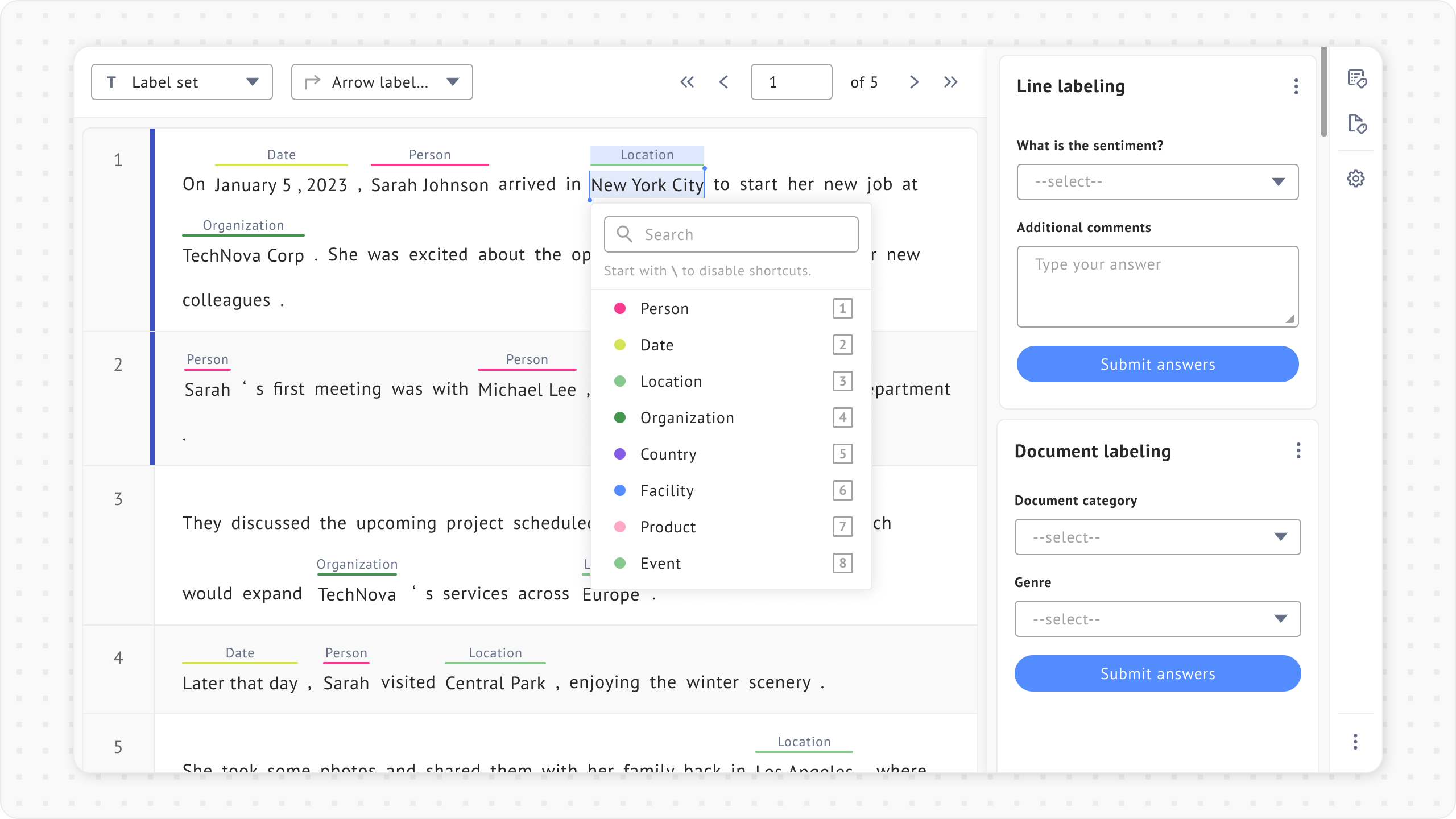 ### Span + line + document Labeling
