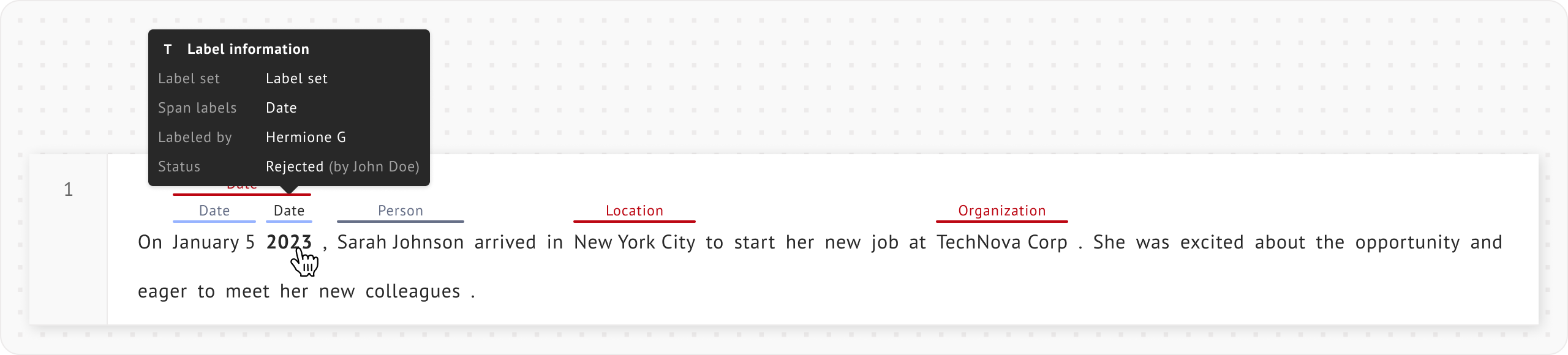 <figure><img src="https://448889121-files.gitbook.io/~/files/v0/b/gitbook-x-prod.appspot.com/o/spaces%2F-MbjY0HseEqu7LtYAt4d%2Fuploads%2Fgit-blob-2d04c25437bd1e957f38a7b6a276281296e1ba5c%2FProject%20-%20span%20labeling%20-%20reviewer%20mode%20-%20hover%20on%20rejected%20label.png?alt=media" alt=""><figcaption></figcaption></figure>