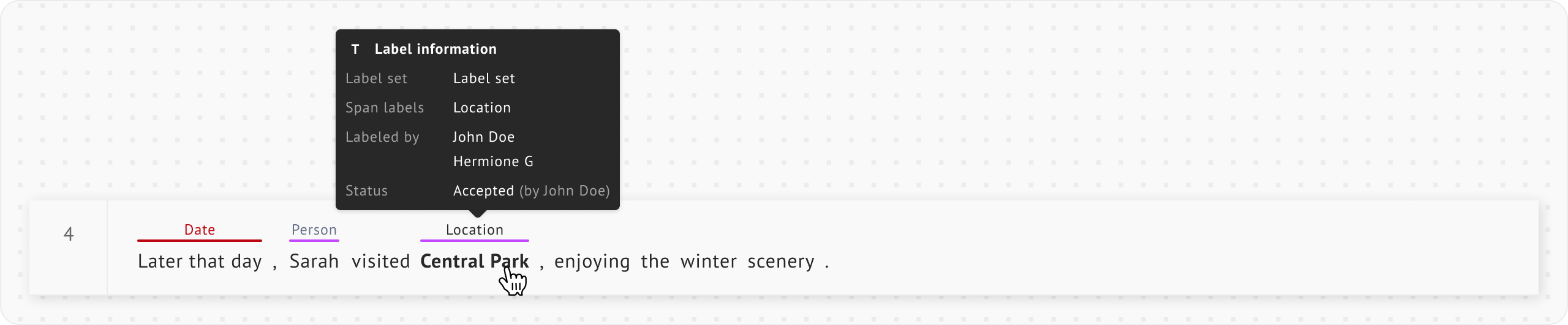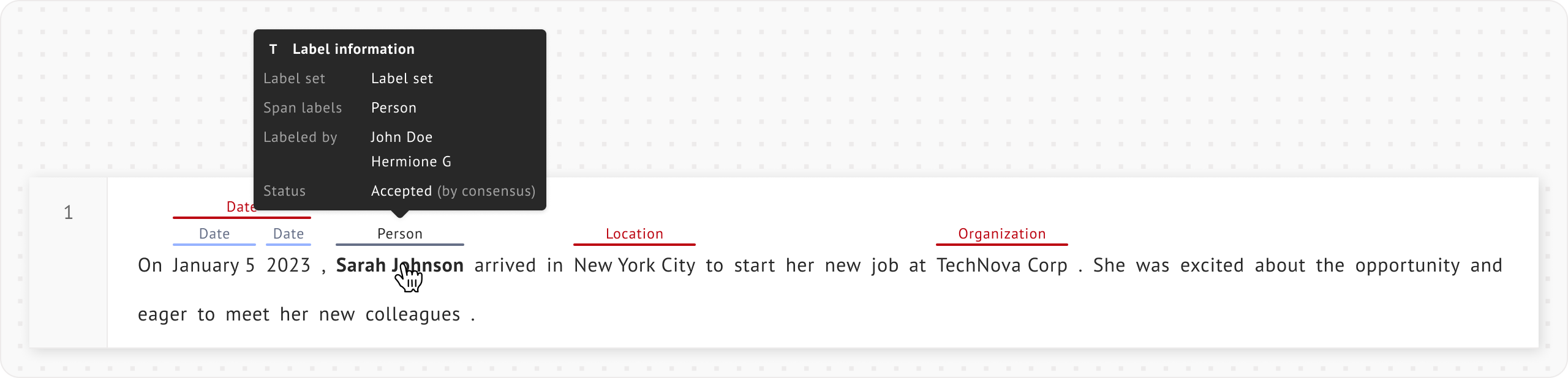 <figure><img src="https://448889121-files.gitbook.io/~/files/v0/b/gitbook-x-prod.appspot.com/o/spaces%2F-MbjY0HseEqu7LtYAt4d%2Fuploads%2Fgit-blob-c41b5b455f20988ce8afebc4f832029c4148c019%2FProject%20-%20span%20labeling%20-%20reviewer%20mode%20-%20hover%20on%20accepted%20by%20consensus%20label.png?alt=media" alt=""><figcaption></figcaption></figure>