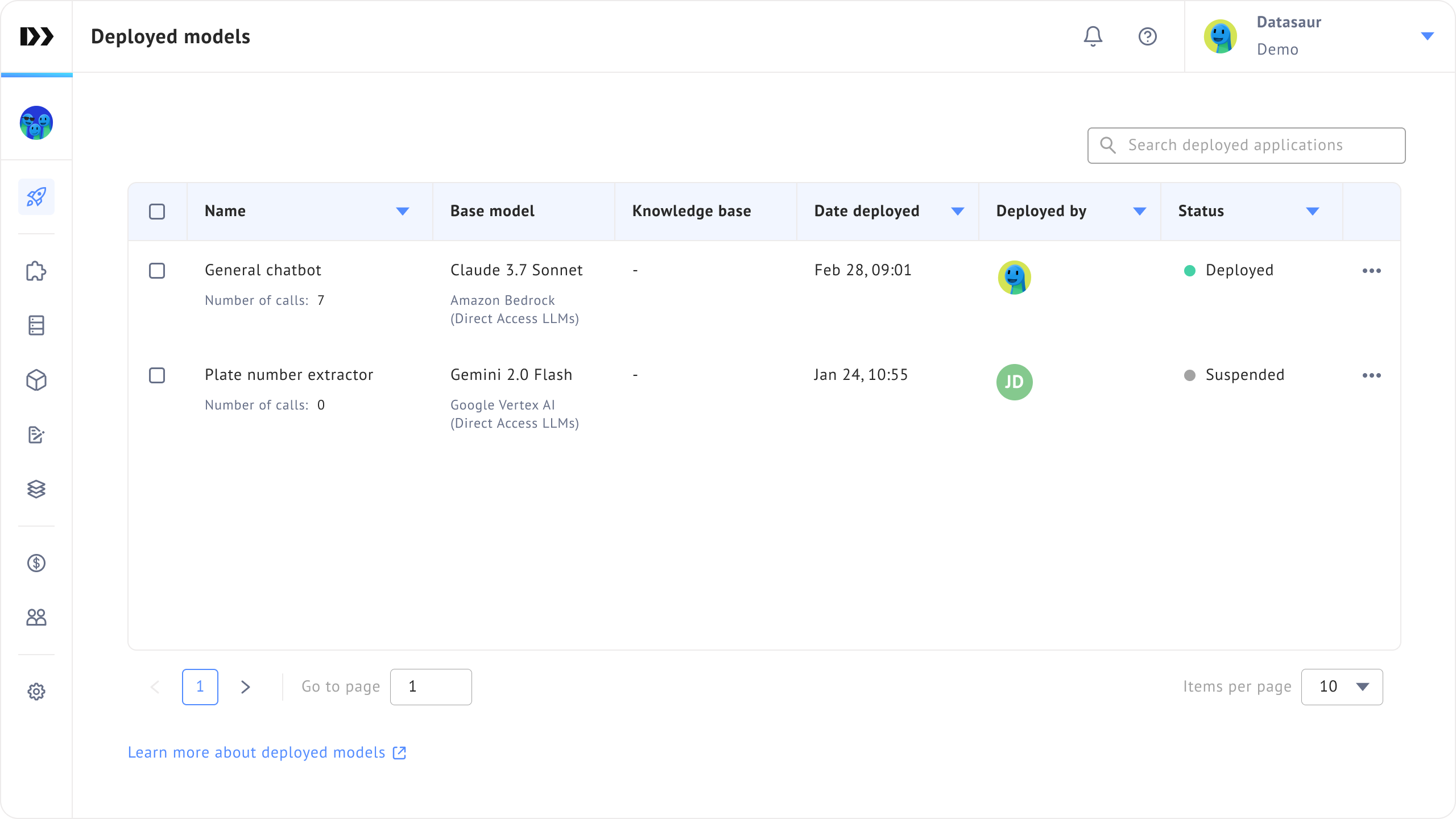 4. You can also manage your list of previously created deployments on the **Deployed models** page.