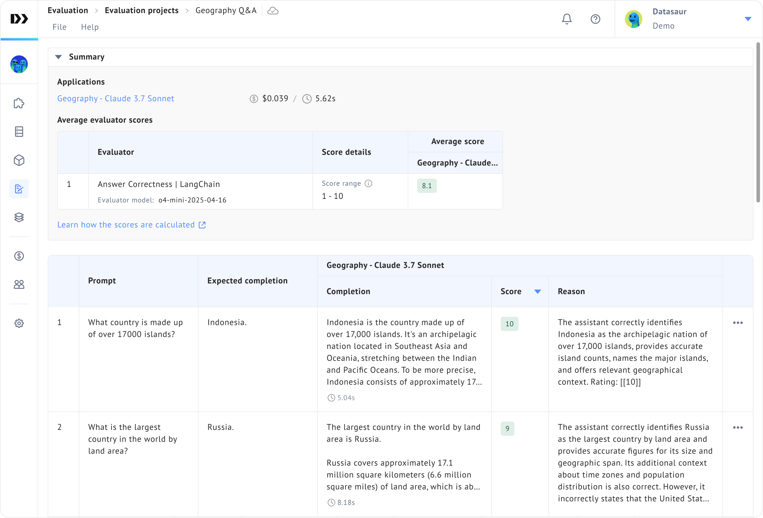 * **Generation cost and processing time**: View the total cost and time taken for generating completions.