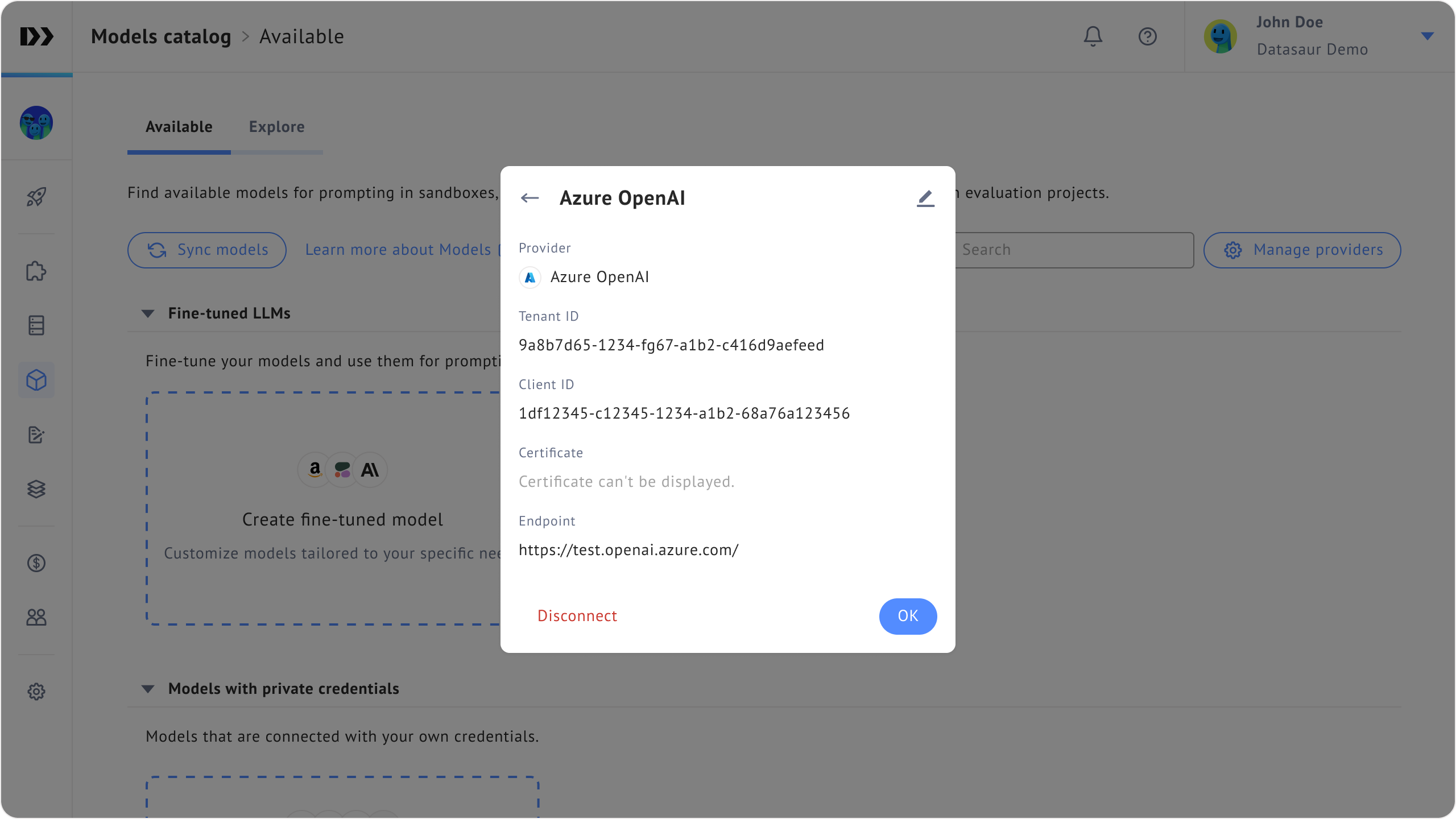 Additionally, you can bring your own **fine-tuned models** from Azure OpenAI into Datasaur, allowing for greater customization and performance tailored to your specific use cases.