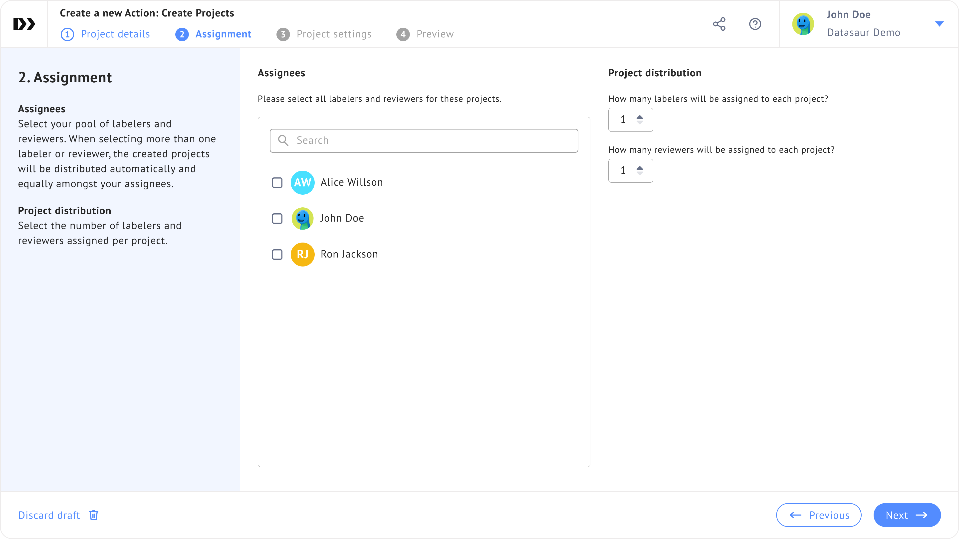 Assignees. Select a pool of labelers and reviewers for the Action that will be distributed based on your preferences. There has to be at least one labeler and one reviewer.