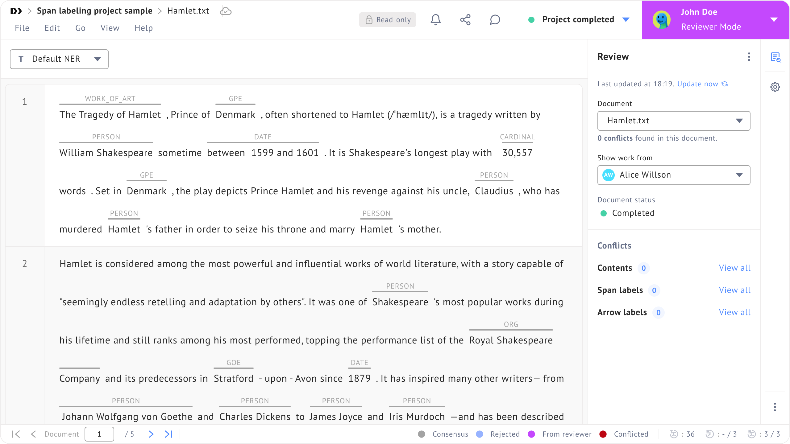 <figure><img src="https://448889121-files.gitbook.io/~/files/v0/b/gitbook-x-prod.appspot.com/o/spaces%2F-MbjY0HseEqu7LtYAt4d%2Fuploads%2Fgit-blob-01ff3ba022220d0daf896074da33e5379b10eed4%2FSpan%20labeling%20-%20reviewer%20mode%20-%20read%20only.png?alt=media" alt=""><figcaption><p>Show work from all labelers</p></figcaption></figure>