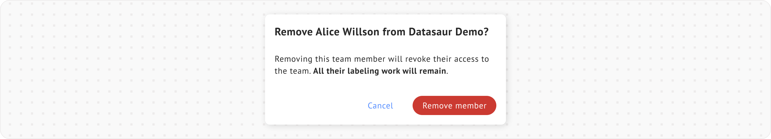 Don't worry! Removing team members from the workspace will remain all their labeling work.